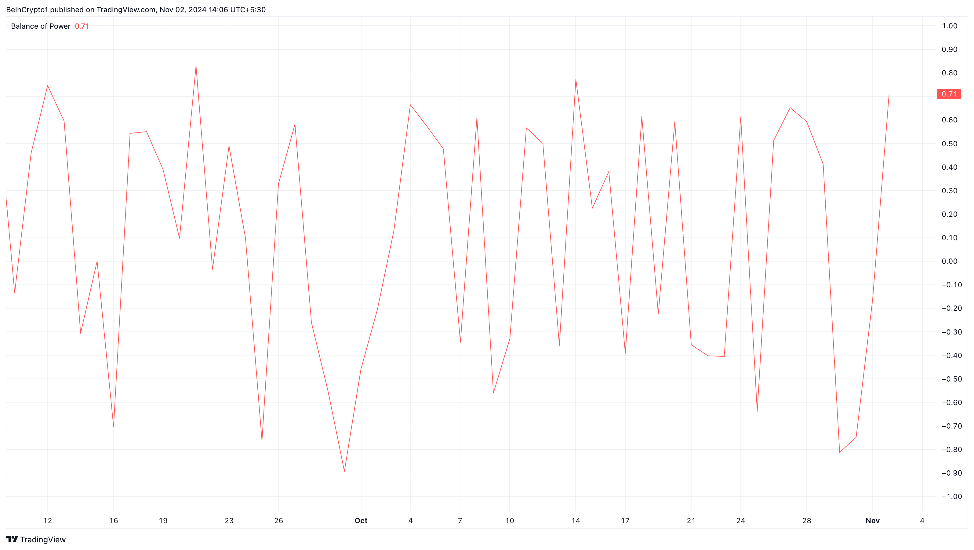 To 29. kwartalne spalenie, warte ponad 1 mld USD, przyczynia się do zmniejszenia ogólnej podaży BNB, potencjalnie pobudzając optymistyczne nastroje, gdyż posiadacze oczekują wzrostu cen. Warto zauważyć, że odczyt Balance of Power (BoP) na wykresie dziennym wzrósł po spaleniu, sugerując wzrost optymistycznego momentu. Zwykle spadający BoP wskazuje na kontrolę niedźwiedzi, często sygnalizując spadki cen.