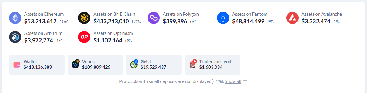 Jak podaje DeBank, pod adresem atakujących znajduje się ponad 544 mln dolarów w cyfrowych aktywach. 80% środków (~433 mln dolarów) znajduje się w sieci BNB Chain i nie można ich wypłacić.