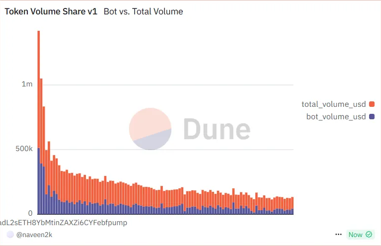Na podstawie danych boty generują 60–80% wolumenu handlowego na niektórych tokenach Pump.fun.