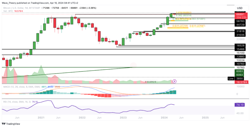 Co najważniejsze, dalszy rozwój BTC zależy od tego, czy poziom wsparcia złotej proporcji wynoszący około 69 000 USD może skutecznie działać jako podłoga dla akcji cenowej. Poziom ten jest kluczowym punktem, ponieważ udane odbicie od tego wsparcia mogłoby zasygnalizować ponowny wzrostowy impuls dla BTC, potencjalnie torując drogę do dalszego ruchu w górę.