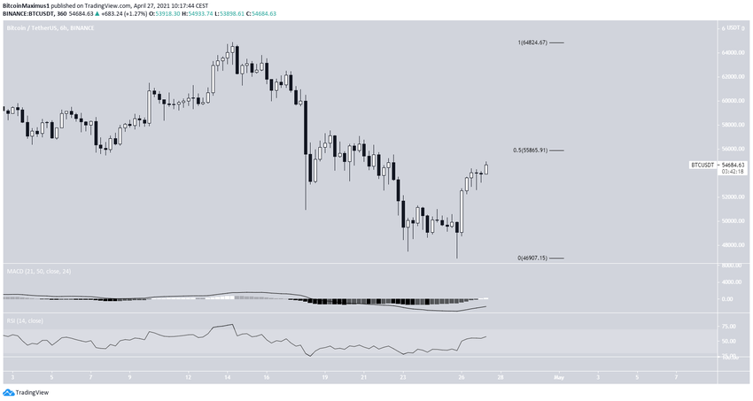 Bitcoin znacznie wzrósł od odbicia z dnia 26 kwietnia. Obecnie zbliża się do poziomu zniesienia 0,5 Fib z poprzedniego ruchu spadkowego. Może on zadziałać jako opór i spowodować krótkotrwałe odrzucenie.