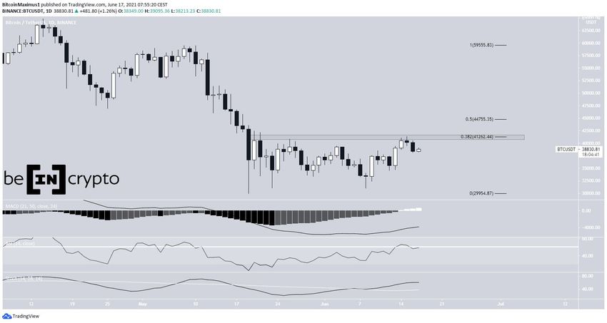 Bitcoin osiągnął szczyt 41.330 USD 15 czerwca. Jednak od tego czasu spada. Spadek nastąpił po odrzuceniu przez obszar oporu 41 250 USD, który jest poziomem oporu zniesienia 0,382 Fib.