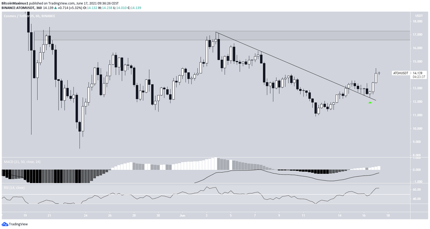 Cosmos (ATOM) wybił się z opadającej linii oporu.