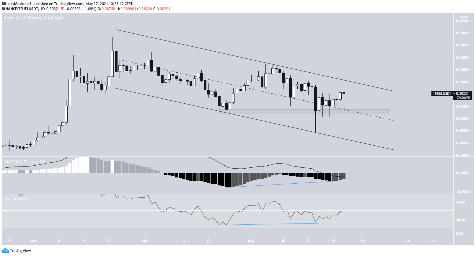 TFUEL jest notowany w zstępującym kanale równoległym od 24 marca. W dniu 19 maja odbił się od linii wsparcia tego kanału i od tego czasu rośnie.