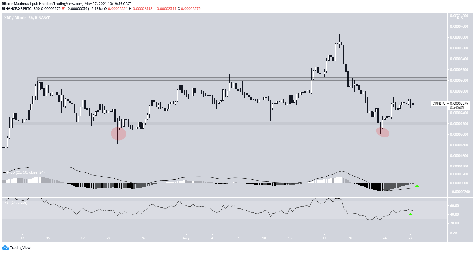 XRP/BTC spadał od dnia 19 maja, kiedy osiągnął szczyt na 3909 satoshi.