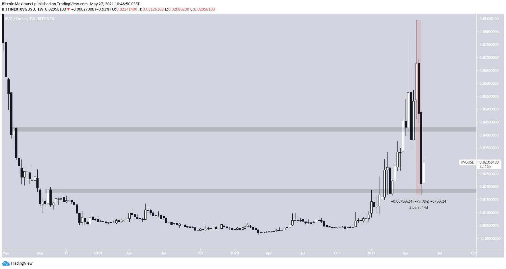 Spadek sprowadził XVG z powrotem do obszaru wsparcia na 0,018 USD, z którego wybił się w grudniu 2020 r. i zapoczątkował odbicie.