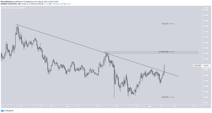 SushiSwap (SUSHI) wybił się z opadającej linii oporu.