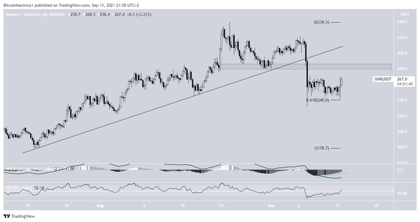 Po wygenerowaniu byczej dywergencji, rozpoczął się ruch w górę, który nadal trwa. Jednakże, pomimo odbicia, XMR musi odzyskać poziom horyzontalny na 282 USD, aby krótkoterminowy trend mógł być uznany za byczy.