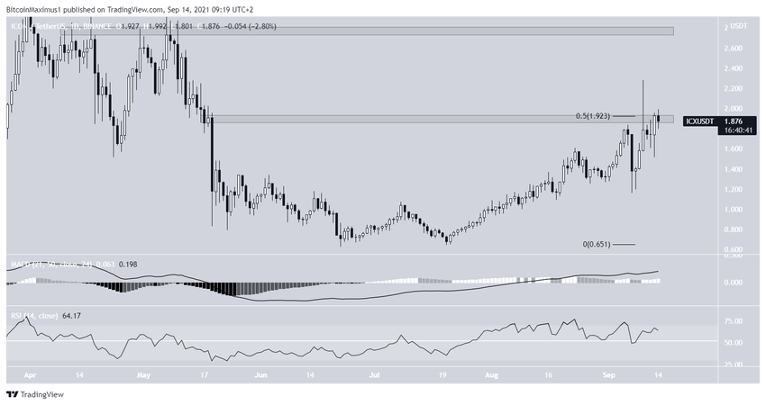 ICON (ICX) próbuje wybić się z obszaru oporu na 1,92 USD.