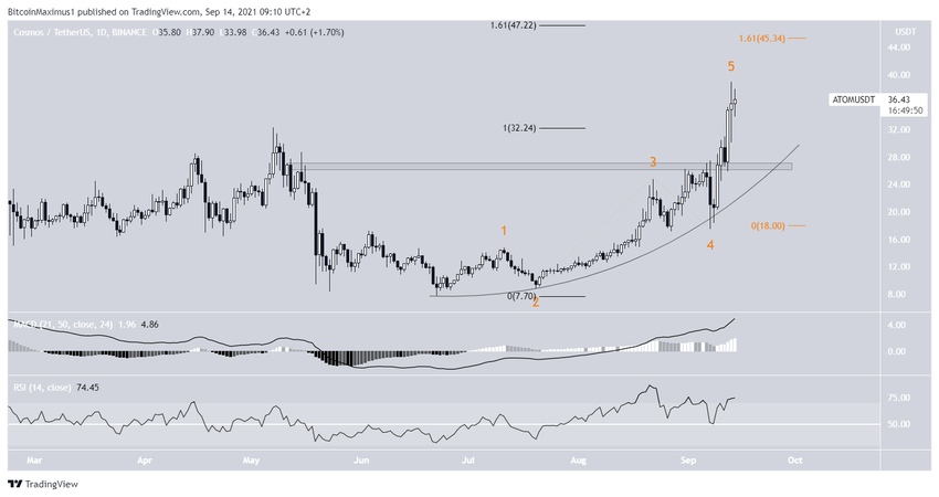 W dniu 10 września altcoin wybił się ponad obszar oporu na 26,80 USD i trzy dni później osiągnął nowy rekord wszech czasów na poziomie 38,95 USD.