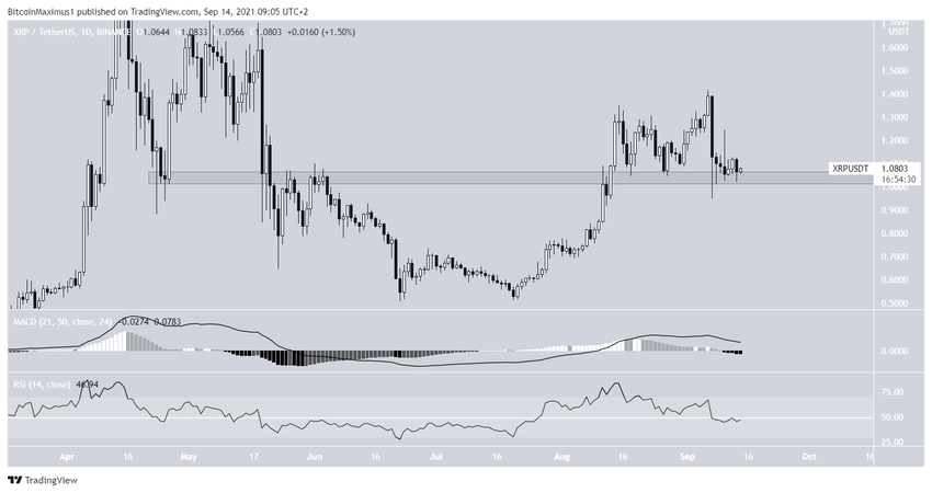 XRP spada od dnia 6 września po osiągnięciu szczytu na poziomie 1,42 USD. Obecnie notowany jest tuż powyżej horyzontalnego obszaru wsparcia na 1,05 USD.