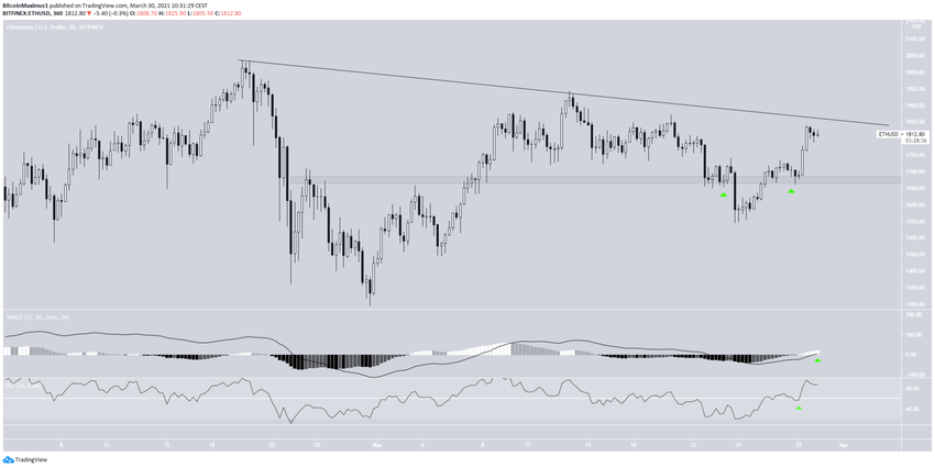 Wskaźniki techniczne wyglądają na bycze, a ETH odzyskało obszar 1680 USD, potwierdzając go jako wsparcie. Dlatego oczekuje się, że nastąpi wybicie.