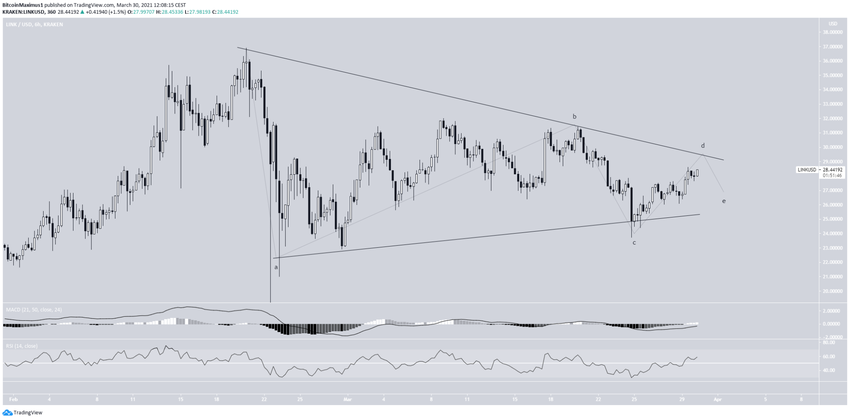 Podobnie jak ATOM, LINK również jest od dnia 22 lutego notowany wewnątrz symetrycznego trójkąta.