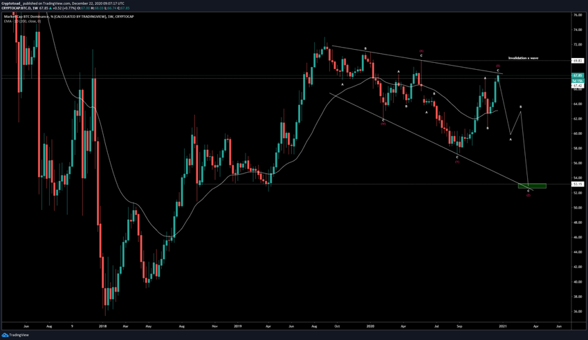 W tygodniu pomiędzy 14-21 grudnia BTCD wybiło się z opadającej linii oporu, która istniała od sierpnia 2019 roku.
