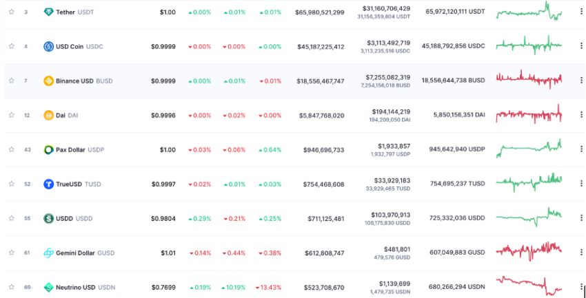 Oto przegląd wiodących stablecoinów tracących parytet dolarowy na CoinMarketCap.