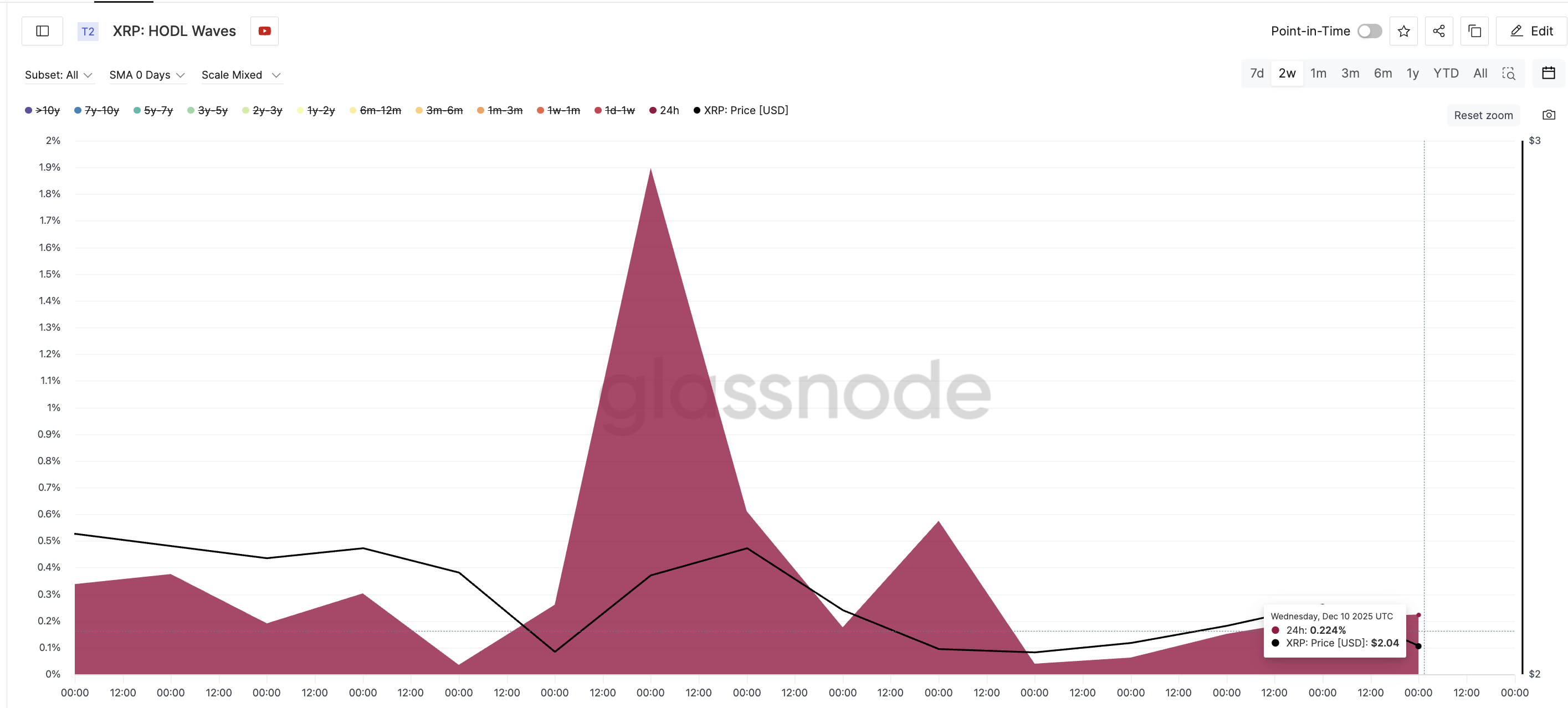 W tym kontekście, 24-godzinna kohorta posiadała 1,89% podaży w dniu 2 grudnia. Do 10 grudnia odsetek ten spadł do zaledwie 0,22%.