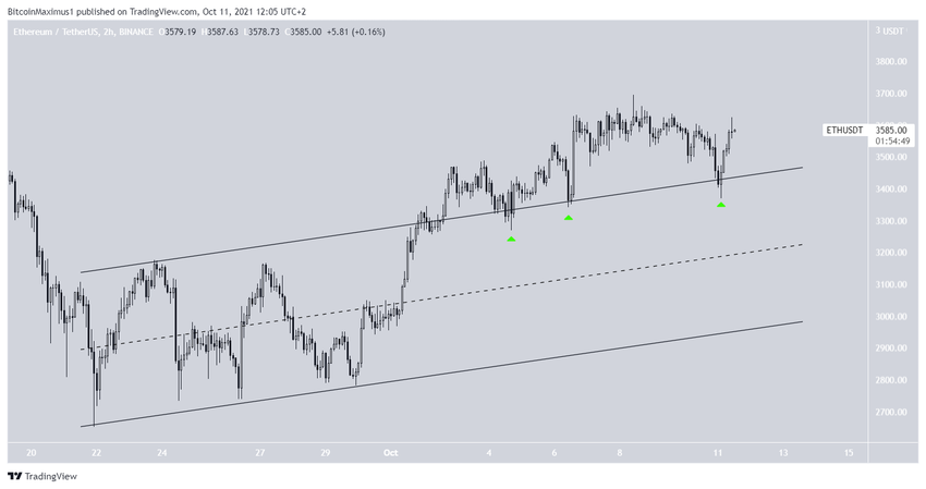 Ethereum wybiło się z krótkoterminowego kanału równoległego wzrostowego i wielokrotnie potwierdziło go jako wsparcie (zielone ikony).