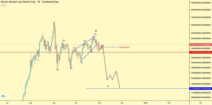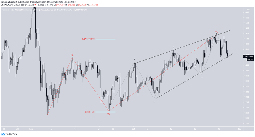 Fala C pojawiła się w końcowej przekątnej (czarnej). Jeśli liczba ta jest poprawna, to oczekuje się, że ALTCAP spadnie, jak opisano w tweecie.