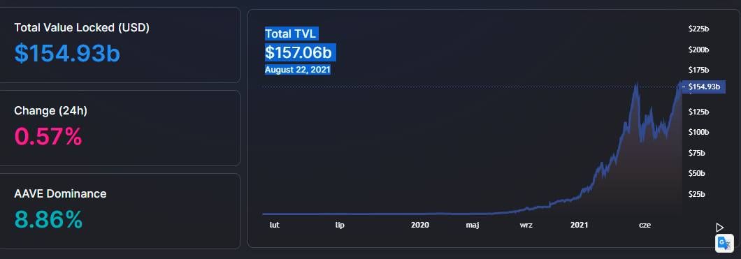 Dane z serwisu DeFi Llama wskazują, że całkowita wartość zablokowana (TVL) we wszystkich protokołach DeFi osiągnęła nowy rekord wszechczasów. ATH zostało zdobyte przy poziomie 157,06 miliardów dolarów. Zdaniem wielu analityków, to właśnie TVL jest jednym z najlepszych wskaźników sentymentu w ekosystemie zdecentralizowanych finansów.