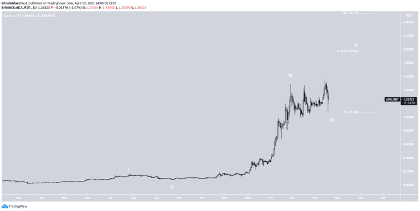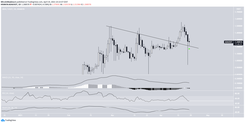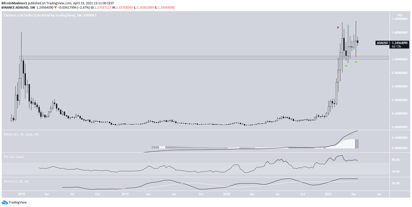 Cardano odbiło się później i 14 kwietnia osiągnęło nowy ATH o wartości 1,57 USD. Jednak od tamtej pory ponownie spadło.