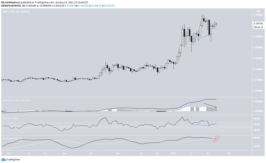 Wykres Cardano (ADA) spada od czasu osiągnięcia szczytu na 0,41 USD w dniu 18 stycznia.