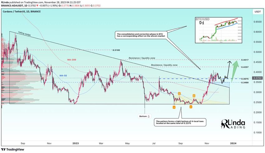Cardano wybiło się z krótkoterminowego poziomego oporu, ale jeszcze nie przekroczyło długoterminowego oporu. Czy wkrótce to zrobi?