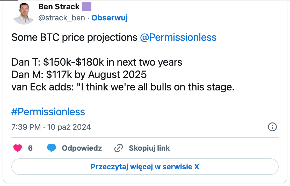 Dan Tapiero, założyciel funduszu 10T Holdings, przewiduje, że cena Bitcoina może sięgnąć 100 000 USD, niezależnie od wyników wyborów prezydenckich w USA. Jego prognoza, wygłoszona na ostatniej konferencji Permissionless w Salt Lake City, opiera się na rosnącym zainteresowaniu inwestorów instytucjonalnych oraz pozytywnym sentymencie rynkowym.
