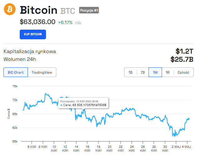 Obecnie Bitcoin wykazuje oznaki poprawy, przekraczając poziom 63 000 USD po raz pierwszy od końca kwietnia. Ten pozytywny ruch odzwierciedla wzrost o 4,6% w ciągu ostatnich 24 godzin.