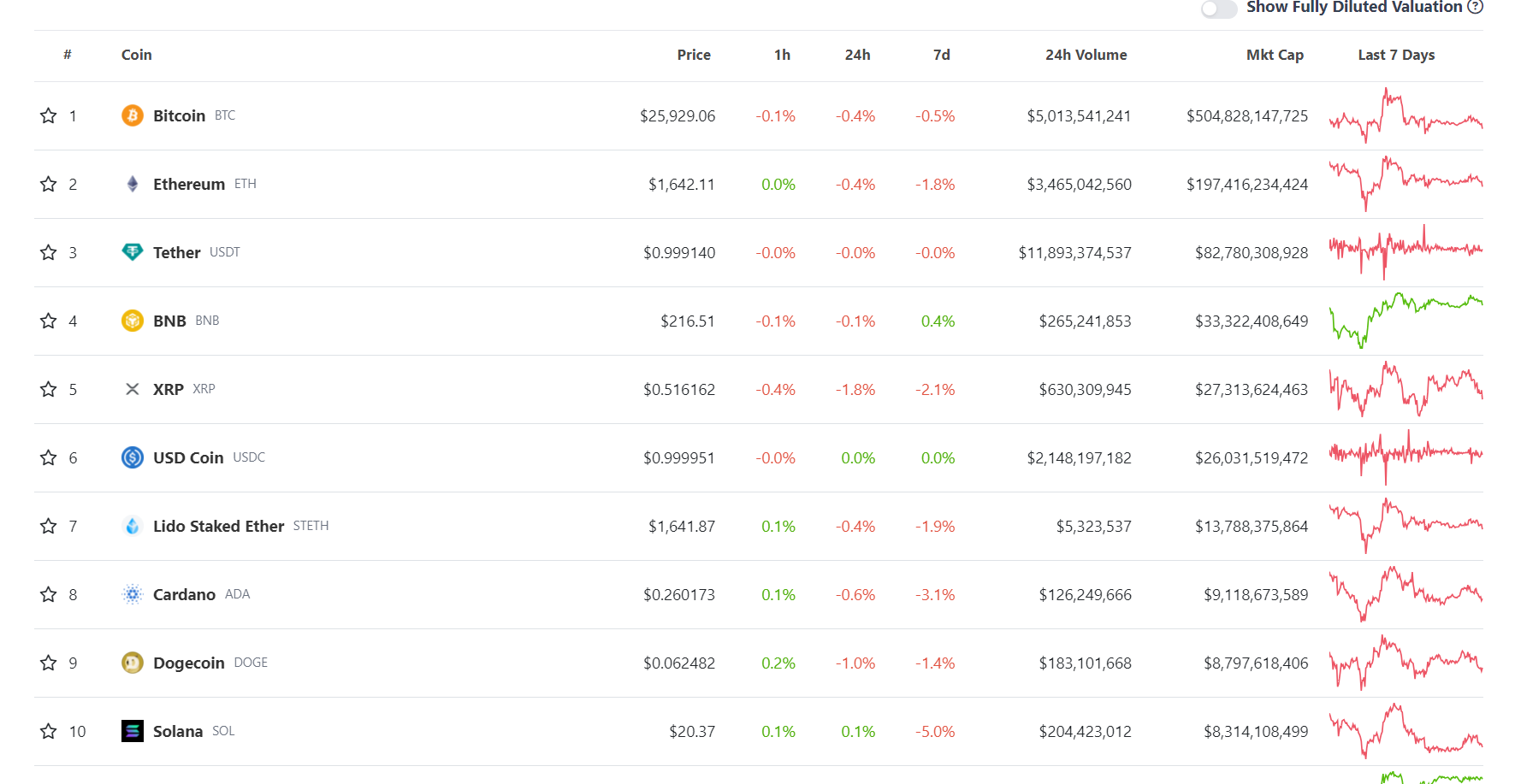 Ogólnie rzecz biorąc, sytuacja na rynku kryptowalut pozostawia wiele do życzenia. W połowie sierpnia branża cyfrowych aktywów doświadczyła załamania, podczas którego Bitcoin spadł do poziomu 25 000 USD. Od tego czasu nastąpiło ożywienie na rynku, ale niewielkie. BTC handluje dziś poniżej 26 tysięcy, a kursy najlepszych monet według kapitalizacji rynkowej wyglądają następująco.