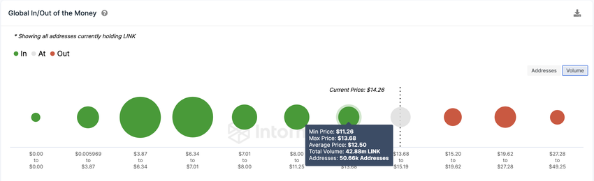 Dane Global In/Out of the Money (GIOM), które grupują obecne adresy tokenów LINK według ich cen wejścia, również potwierdzają tę prognozę.