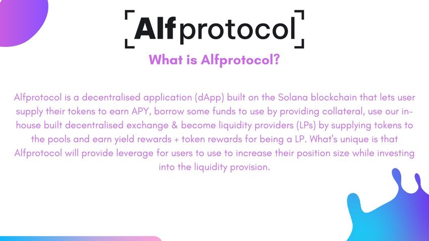 Pierwszym tematem dyskusji było przedstawienie tego, czym w uproszczeniu jest Alf Protocol. Sauciunas wyjaśnił, że Alf jest zdecentralizowaną aplikacją (dApp), która oferuje możliwość udzielania kredytów, pożyczek, zdecentralizowaną giełdę (DEX) oraz dostarczanie płynności. Stwierdził:
