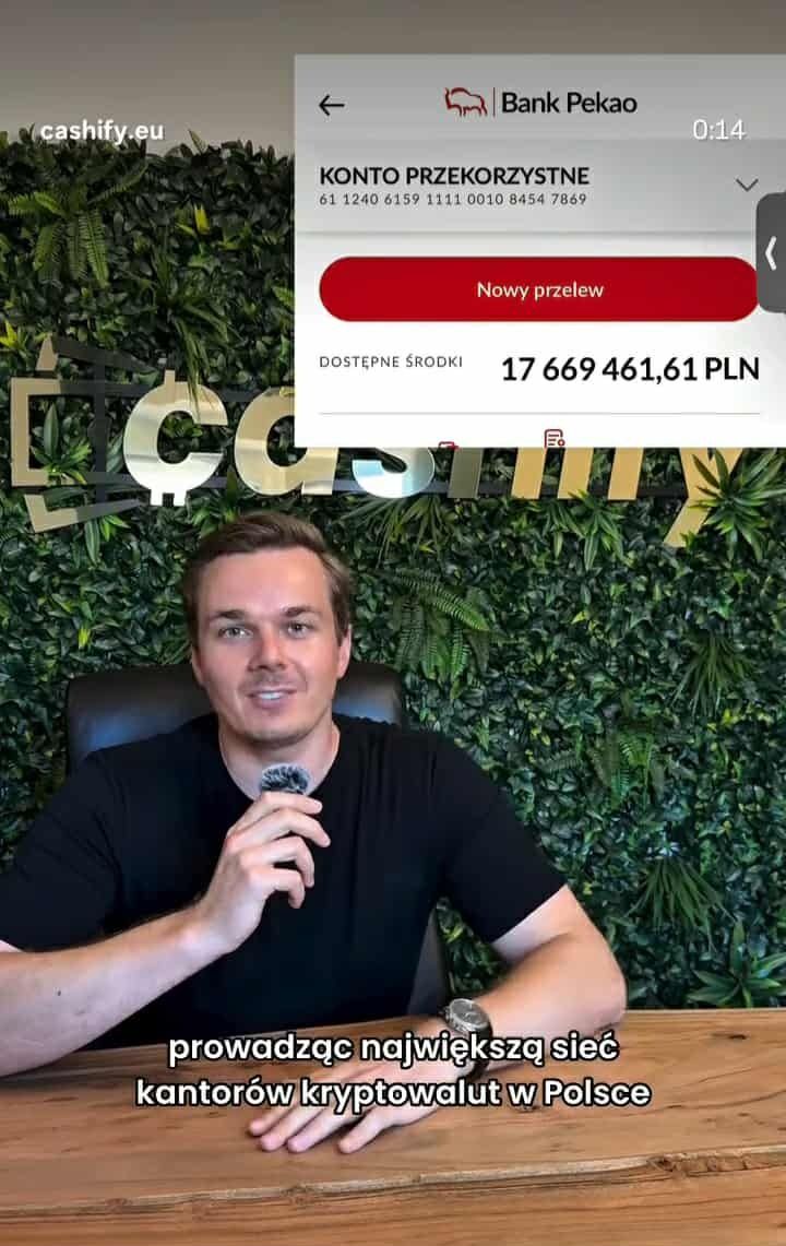 CEO Cashify, Jakub Bartoszek, zaskoczył swoich obserwatorów na Instagramie. W rolce chwalił się kontem bankowym z prawie 18 mln zł. Brzmiało to jak typowa historia krypto-guru, który „wie, jak zarobić miliony”.
