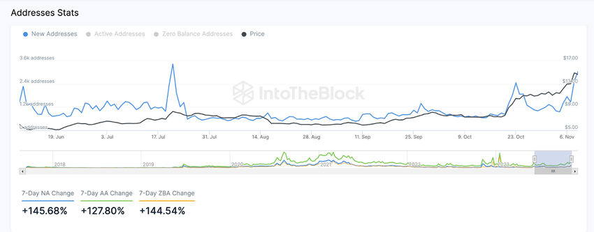Chainlink (LINK) osiągnął nowy szczyt w 2023 roku na poziomie 16 USD w dniu 9 listopada. Następnie niedźwiedzie wymusiły spadek o 10% poniżej 14,5 USD. Istotne wskaźniki on-chain dają zielone sygnały do natychmiastowego odbicia.