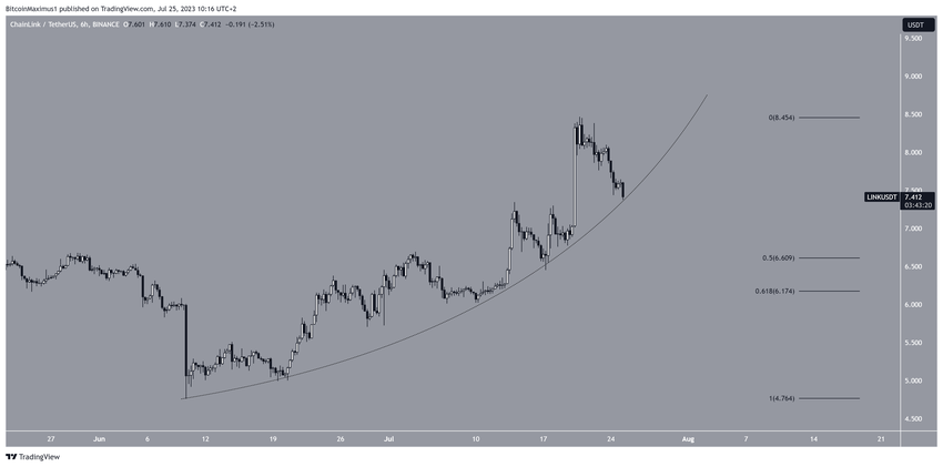 Zgodnie z tygodniową analizą techniczną, od maja 2021 r. cena LINK spada poniżej opadającej linii oporu. Spadek ten doprowadził do dołka na poziomie 4,75 USD w czerwcu 2023 r. Co więcej, wydawało się, że spowoduje to utratę horyzontalnego obszaru 6 USD, który obowiązywał od maja 2022 r.