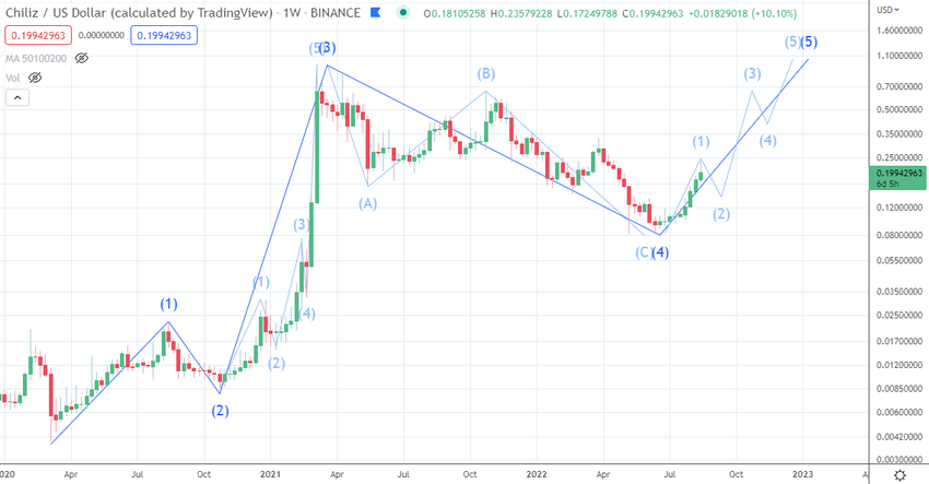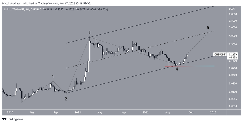 Chiliz (CHZ) wybił się z długo- i krótkoterminowego oporu, a liczba fal sugeruje, że altcoin osiągnął już dołek.