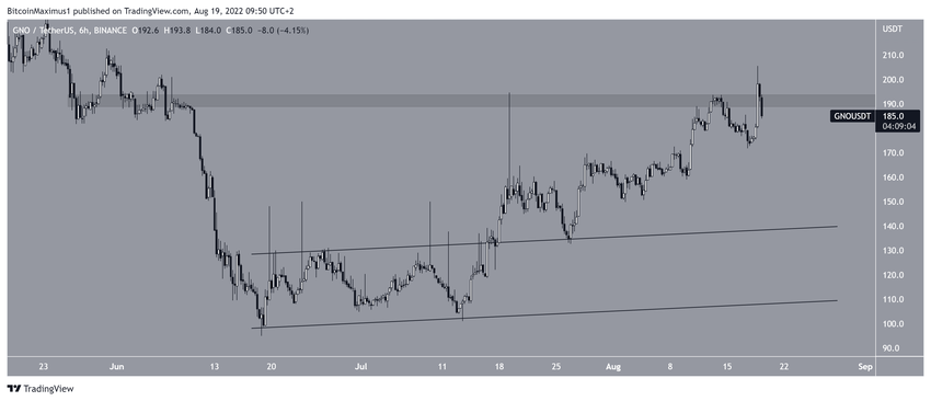 W dniu 17 lipca GNO wybił się ze wznoszącej się linii wsparcia, która – podobnie jak w przypadku Chiliz – obowiązywała od 18 czerwca. Token powrócił do zatwierdzenia jej jako wsparcia w dniu 26 lipca. Od tego czasu cena porusza się w górę i osiągnęła szczyt na poziomie 205 USD w dniu 18 sierpnia.