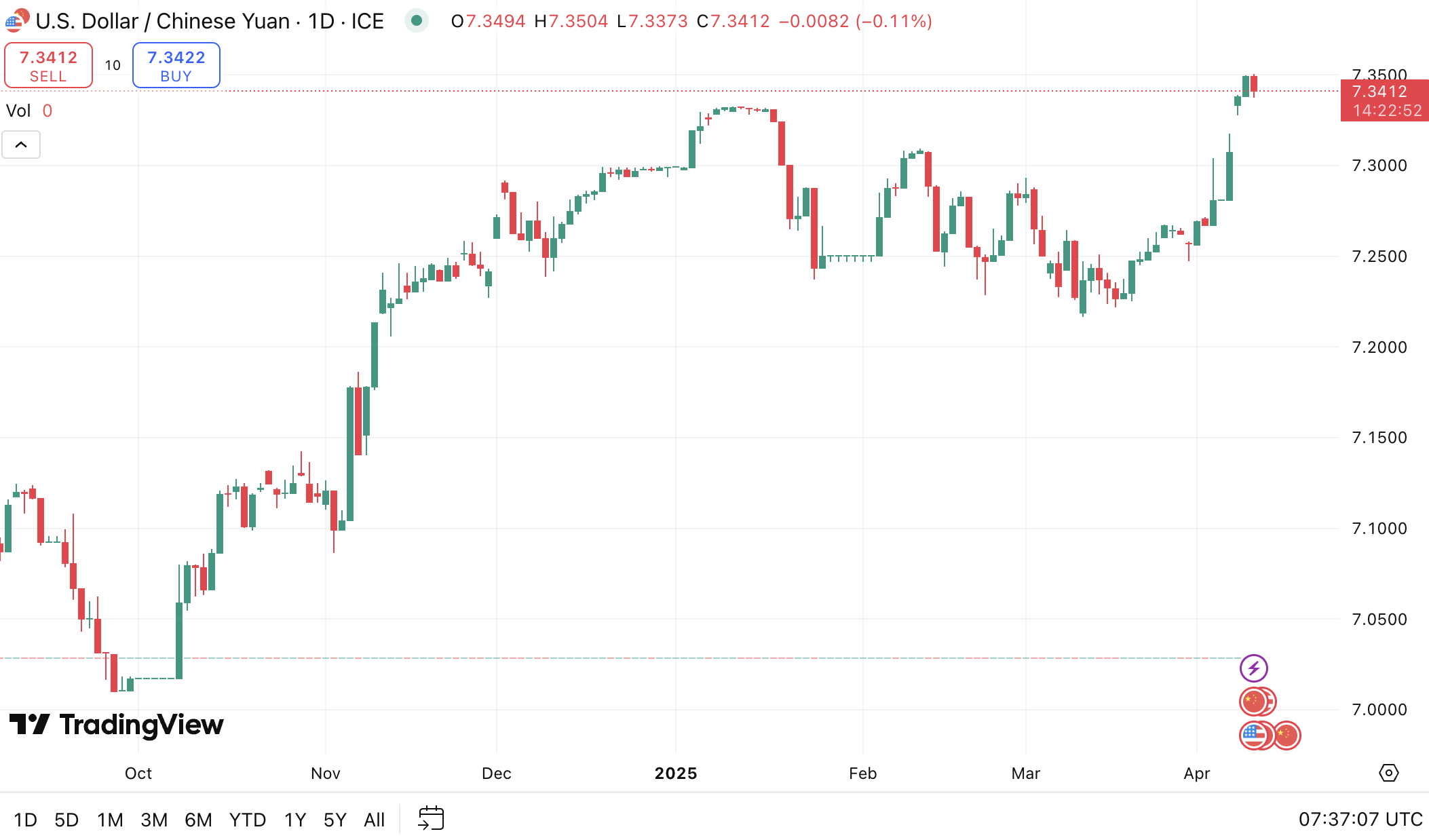 W dniu 10 kwietnia 2025 roku chiński juan (CNY) osiągnął najsłabszy wynik od 18 lat w stosunku do dolara amerykańskiego (USD). Dewaluacja chińskiej waluty ma związek z narastającymi napięciami w trwającej wojnie handlowej między dwoma globalnymi gigantami gospodarczymi.