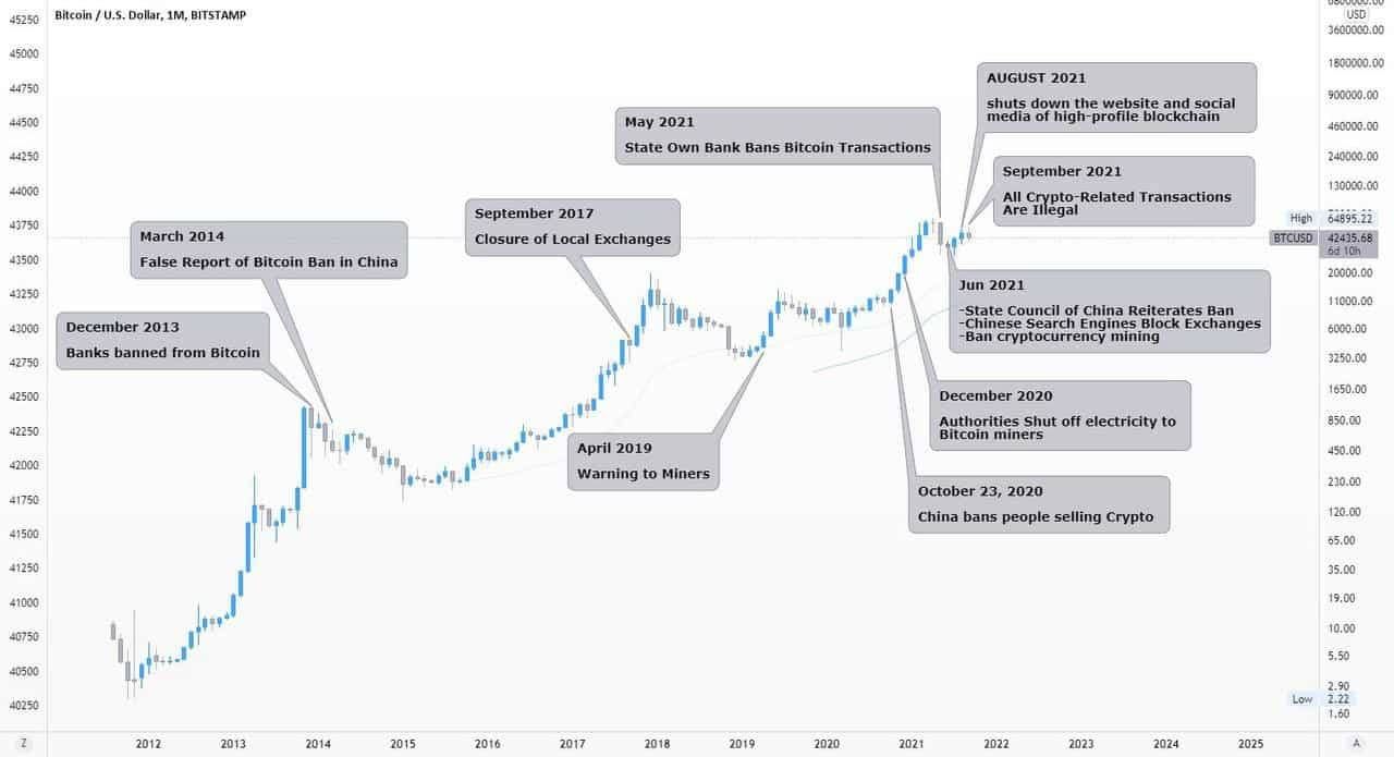 Rząd Chin miał negatywne stanowisko wobec Bitcoina już od pierwszego roku jego istnienia. Wielokrotnie nakładał zakazy, powołując się na związane z nim zagrożenia.