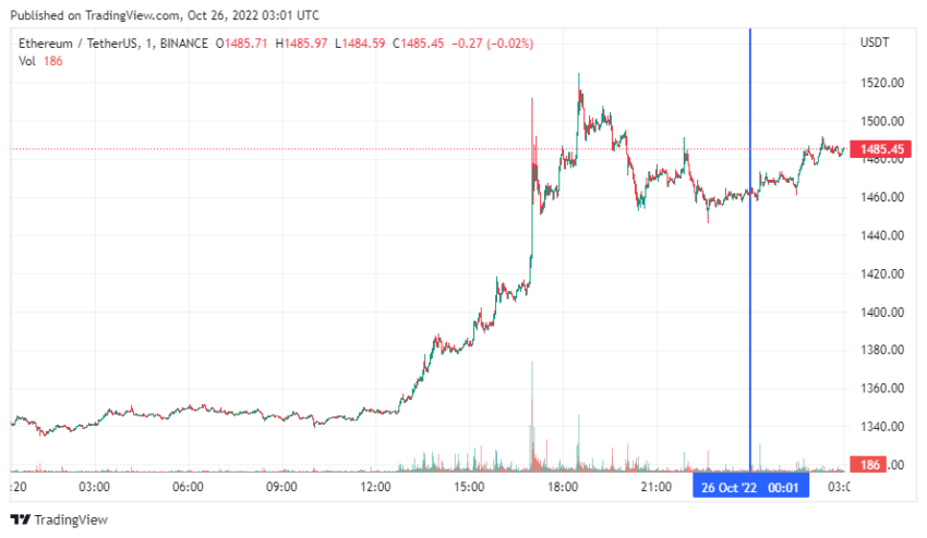 Ethereum, druga pod względem kapitalizacji kryptowaluta, również rozpoczęła dzień od lekkiego wzrostu. W chwili pisania tego tekstu, moneta jest notowana na poziomie 1485 dolarów.