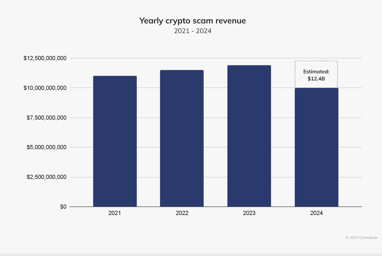 Tymczasem w 2024 roku oszustwa kryptowalutowe osiągnęły rekordowy poziom, głównie za sprawą tzw. oszustw typu „ubój świń” oraz rosnącego wykorzystania generatywnej sztucznej inteligencji (GenAI). Według firmy analitycznej Chainalysis, przychody z oszustw kryptowalutowych wyniosły co najmniej 9,9 mld USD, a po uwzględnieniu dodatkowych danych mogą sięgnąć nawet 12,4 mld USD. Przychody z oszustw typu „ubój świń” (pig butchering scam) wzrosły o prawie 40% w porównaniu z rokiem poprzednim.