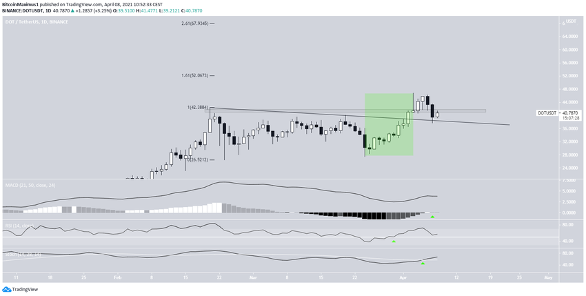 Polkadot (DOT) wybił się z opadającej linii oporu i próbuje odzyskać obszar oporu na 41,50 USD.
