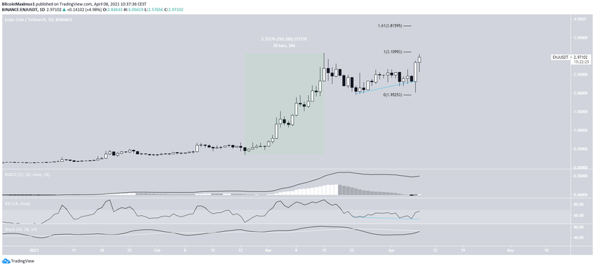 Enjin Coin (ENJ) odbił się w dniu 7 kwietnia i próbuje osiągnąć nowy rekord wszech czasów (ATH).