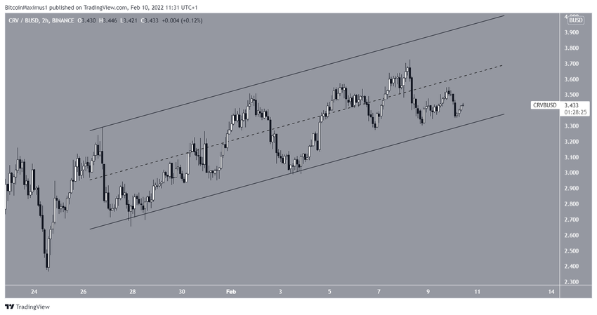 Podobnie jak ETH, Curve DAO Token (CRV) handluje wewnątrz wznoszącego się równoległego kanału od dnia 27 stycznia.