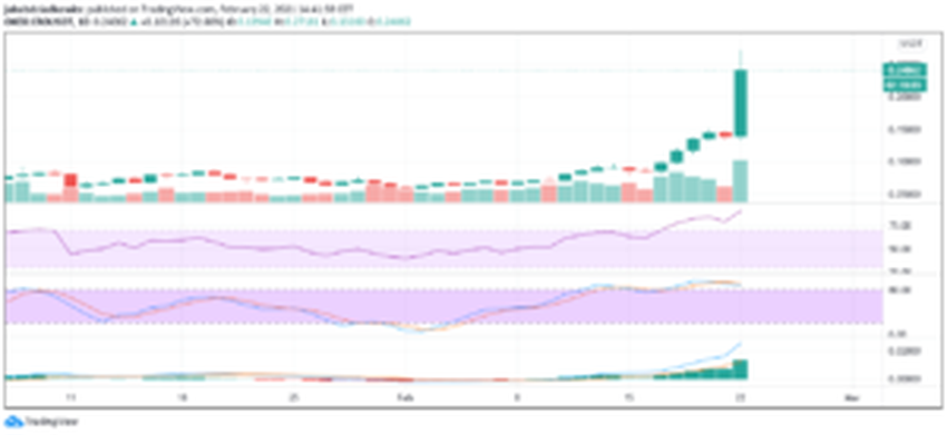 Ogromna świeca prawie osiągnęła wartość 0,28 USD, czyli poziom zniesienia 1,618 Fib całego ruchu spadkowego, który jest pierwszym naturalnym obszarem reakcji. Co ciekawe, CRO znajduje się w trendzie wzrostowym od 3 tygodni, od dołka na 0,06 USD z dnia 1 lutego. Jeżeli policzyć wzrost od tego obszaru, to kryptowaluta urosła o 360% w zaledwie 21 dni.