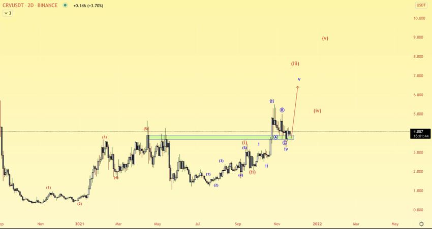 Trader kryptowalutowy @AltstreetBet nakreślił liczbę fali Curve DAO, która sugeruje, że altcoin wyruszy w kierunku nowego ATH.