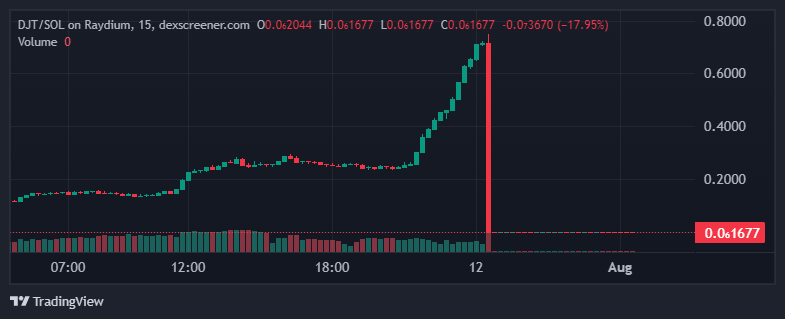 Mimo to, DJT przyciągnął setki milionów USD, zanim założyciele przeprowadzili rug pull na początku sierpnia, powodując załamanie jego wartości.