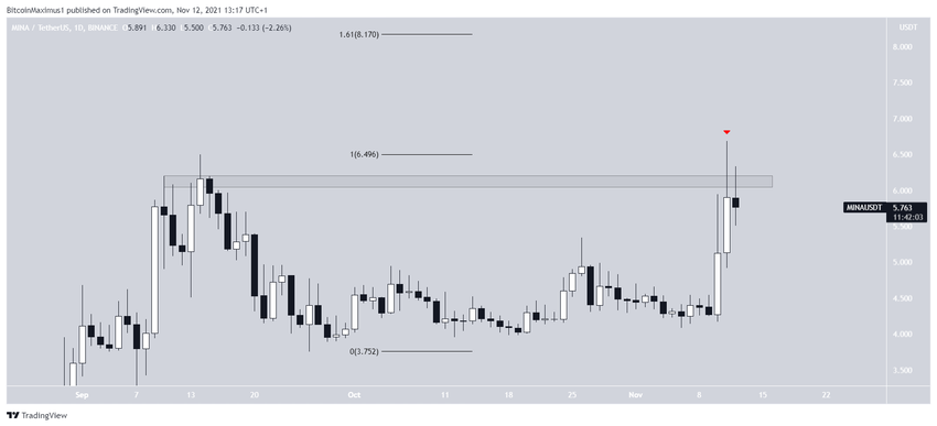 12 listopada MINA osiągnęła nowe ATH w wysokości 6,68 USD. Jednak tego samego dnia utworzyła długi górny knot i zmniejszyła się. To skutecznie stworzyło podwójny szczyt, który jest uważany za niedźwiedzi wzór odwrócenia.