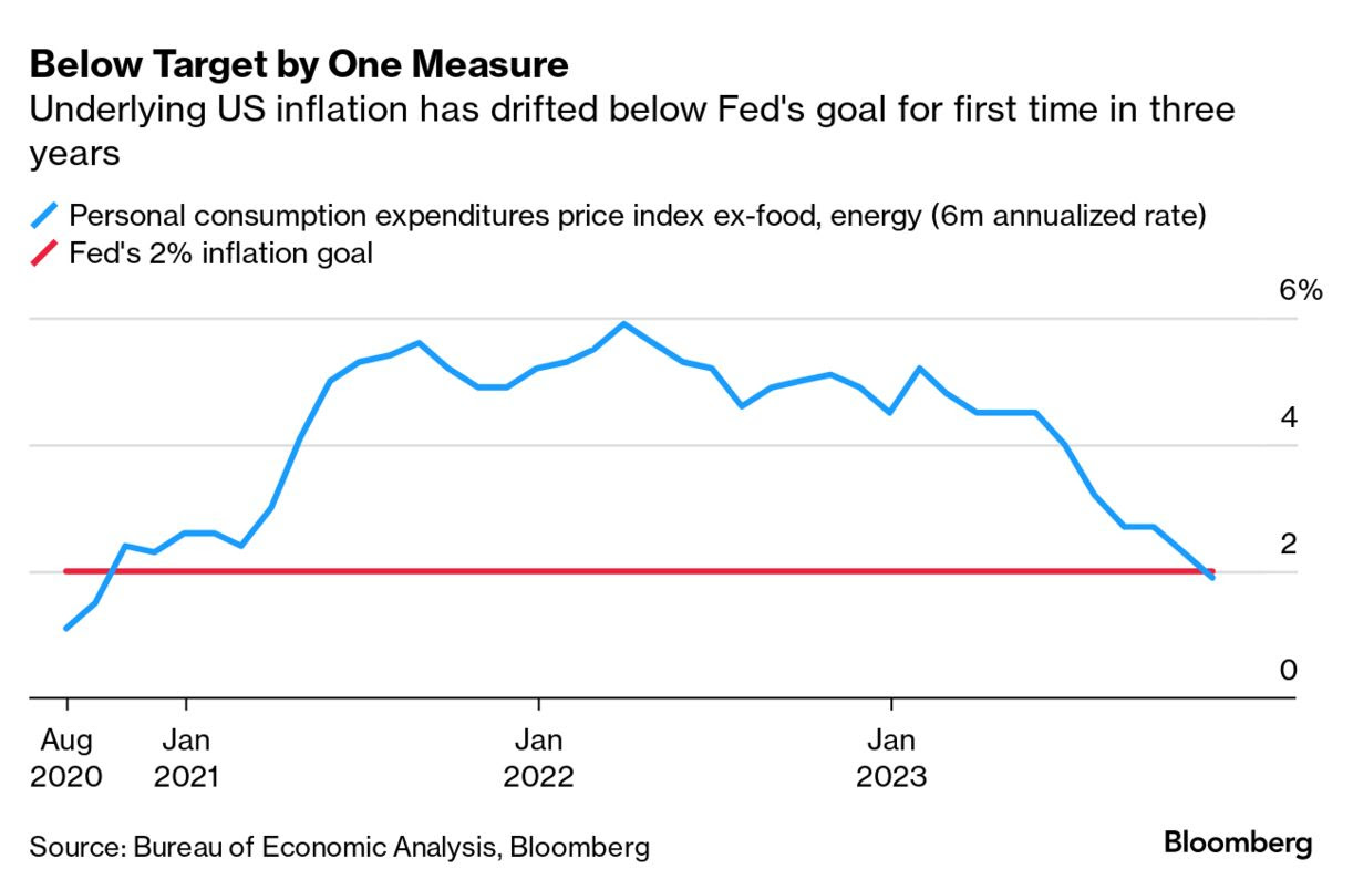 Jeśli porównamy zmiany tego wskaźnika inflacji w ciągu ostatnich 6 miesięcy do 12 miesięcy (tj. w ujęciu rocznym), wskaźnik Core PCE znalazł się nawet poniżej 2,0%, co jest celem amerykańskiego banku centralnego.