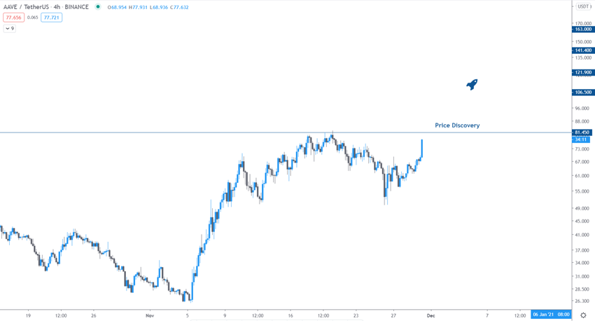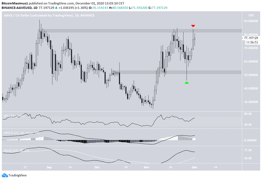 Cena Aave (AAVE) obecnie próbuje przebić się powyżej obszaru oporu na 83 USD, co w przypadku powodzenia doprowadziłoby cenę do nowego rekordu wszech czasów.
