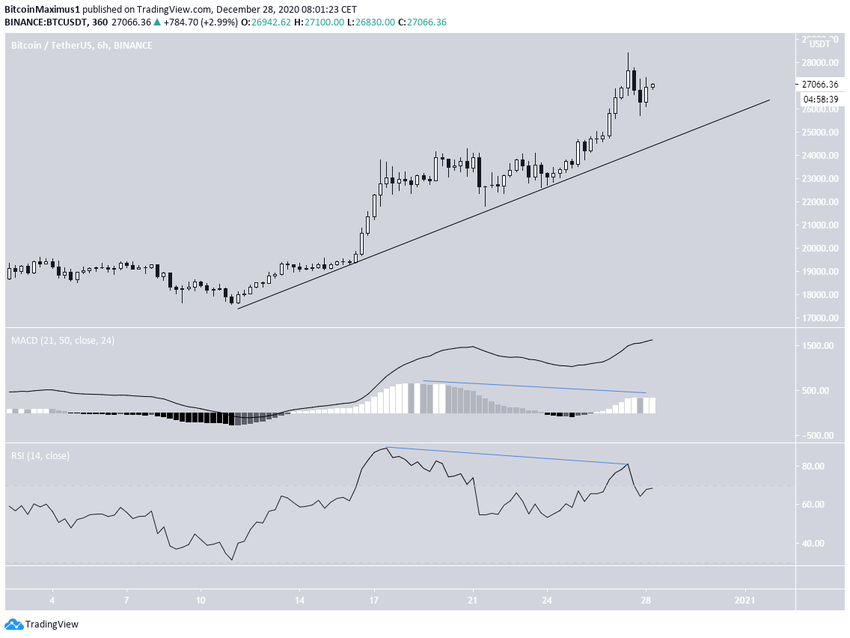 Pokazuje jednak również, że Bitcoin podąża za rosnącą linią wsparcia od dnia 10 grudnia, która obecnie wynosi blisko 25 000 USD.